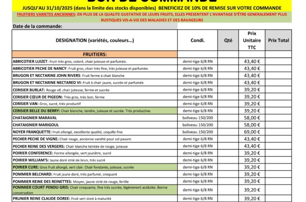 PROMOTIONS: KIT PLANTATION FRUITIERS : 42.10 € SCION FRUITIER+ FOURNITURES HORTICOLES KIT PLANTATION FRUITIERS : 63.30 € ARBRE FRUITIER+ […]